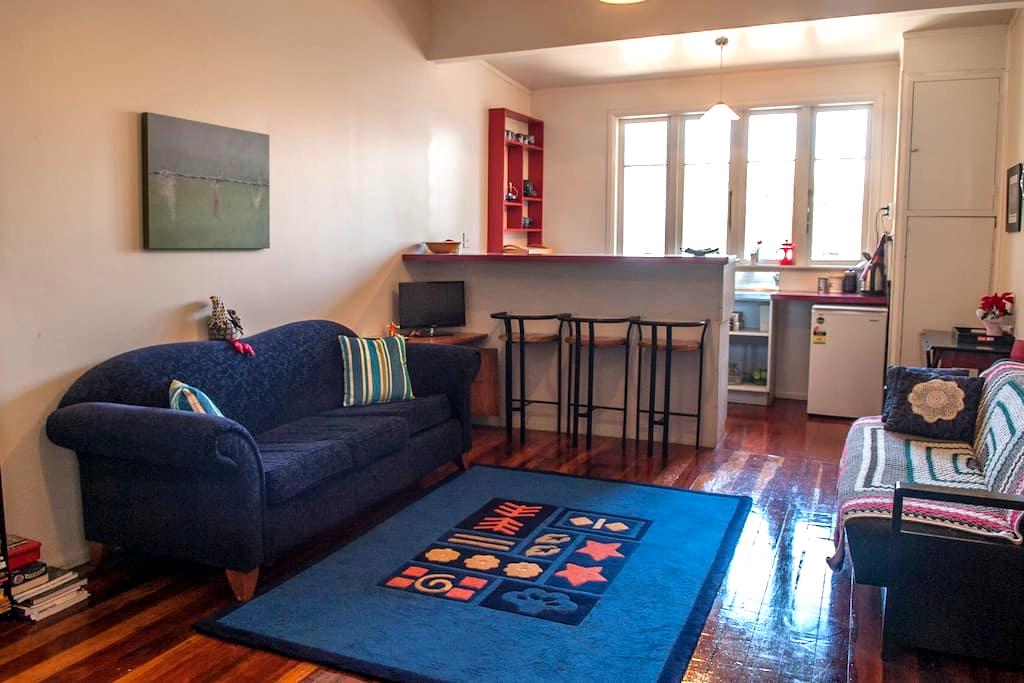 It was raining moderately hard when our Air Tahiti Nui A340 touched down in Auckland. Travel on Air Tahiti Nui was as pleasant as our previous experience on Air New Zealand except all announcements were first made in French, then in English, so those who understood French got first dibs on emergency info. The nice people at Apex Rental handed me the key to a tired old Nissan Note, circa 2004, and off we went. On the left side of the road. Yikes. Calling up learned motor skills from our last NZ trip in 2015, things smoothed out on our way to Ponsonby, Auckland’s trendiest little neighborhood with lots of shops, bars, restaurants, etc. We lucked out in finding on-street parking in front of our Ponsonby Airbnb, “The Cabana”.
